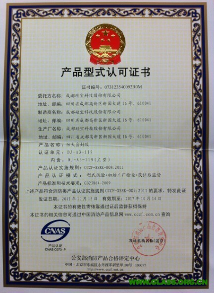 近日,硅寶科技“DJ-A3-119防火密封膠(黑色)產(chǎn)品”榮獲公安部消防產(chǎn)品合格評定中心的型式認(rèn)可證書。此次型式認(rèn)可,硅寶DJ-A3-119防火密封膠(黑色)產(chǎn)品達(dá)到了GB23864-2009最高的A3級耐火等級標(biāo)準(zhǔn),硅寶是目前行業(yè)內(nèi)通過A3級耐火等級型式認(rèn)可的少數(shù)幾家企業(yè)之一。DJ-A3-119防火密封膠產(chǎn)品已應(yīng)用于北京奧運(yùn)會主題工程-鳥巢、全球最大的單體幕墻建筑-新世紀(jì)環(huán)球中心、國內(nèi)罕見的巨型懸挑超高層建筑-深圳證券交易所運(yùn)營中心等大型工程項目上。