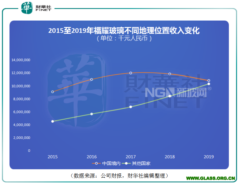 2019年,福耀玻璃(03606-HK)的海外故事仍然在上演。具公司財報披露,2019年,福耀玻璃來自中國境外的收入達到102.94億元,同比增長22.6%。與之相比2019年福耀玻璃在中國境內的收入為108.10億元,同比下降8.6%。國內與海外市場的收入此消彼長,距離福耀玻璃海外市場收入超越中國境內市場,僅有一步之遙。