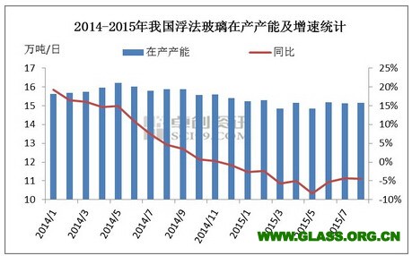 1-8月份新點火及復(fù)產(chǎn)點火生產(chǎn)線共計23條,冷修及停產(chǎn)生產(chǎn)線28條,與2014年年底相比日熔量減少2420噸,跌幅1.57%。