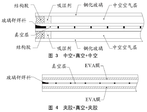 把真空玻璃看成一片原片,在真空玻璃的 2 個(gè)面上分別合一層夾層玻璃,其結(jié)構(gòu)上等同于用兩片夾層玻璃制成的真空玻璃,見(jiàn)圖 4。