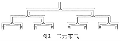 2)主管和每段輔管均采用二元布氣方式(見圖2),確保每個噴嘴的流導(dǎo)一致。